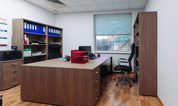 Для начала был разработан дизайн проект с учётом всех требований заказчика по количеству персонала, кабинетов, зон для хранения документов и прочих нюансов прямо влияющих на эффективность работы в новом месте.