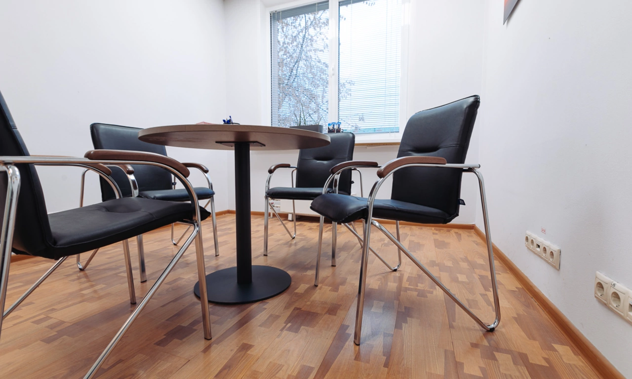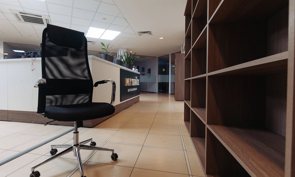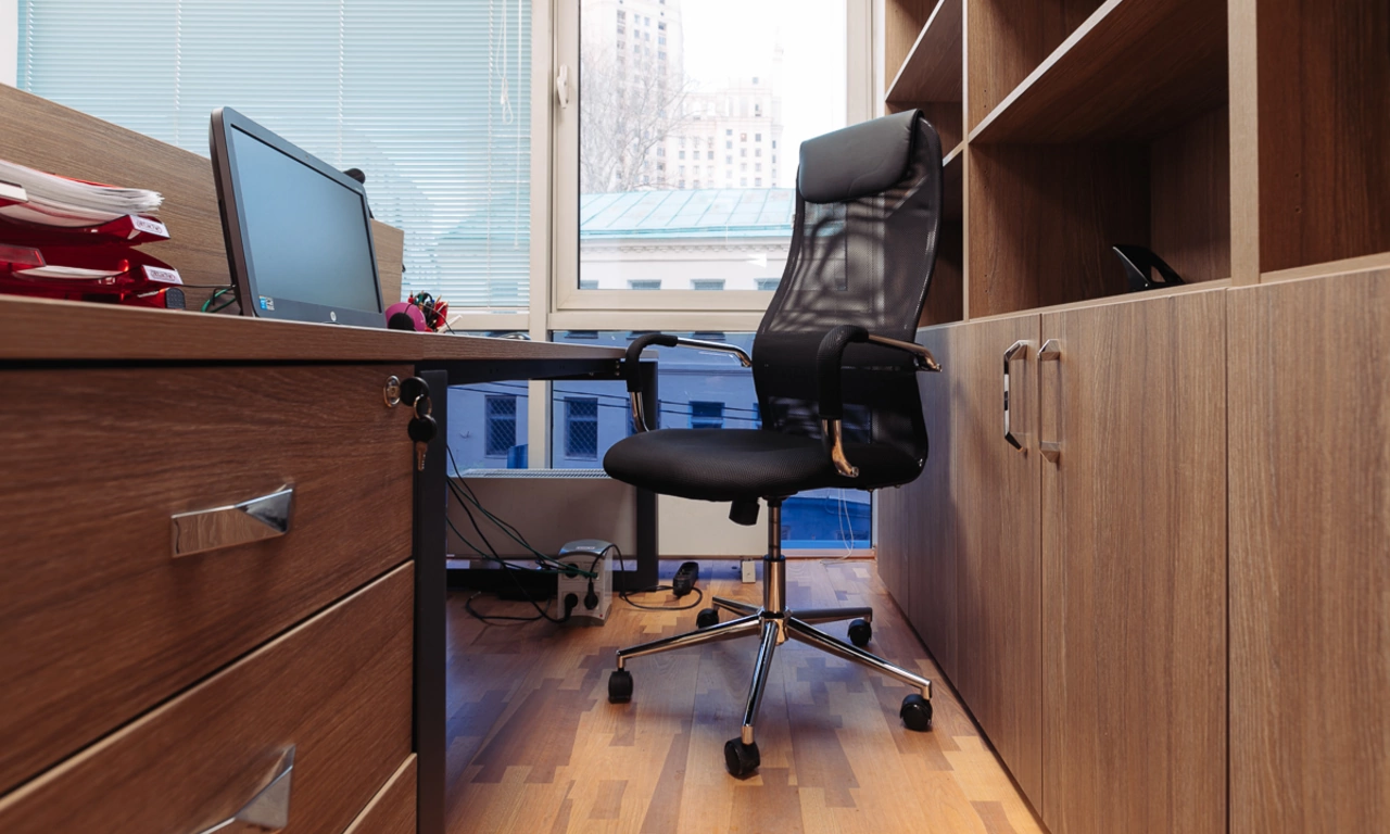 Так как в MySpace Development уже давно пользуются нашей мебелью коллекции долго не выбирали, решили пользоваться уже знакомой по предыдущему офису линейкой мебели для персонала ONIX на металлокаркасе, а за комфорт в течении рабочего дня будут отвечать кресла KB-9N с сетчатыми спинками. Подчеркнуть статус руководителя было решено представительным современным кабинетом LAVA в цвете "табак". А встречи с клиентами и совещания будут проходить в уютной переговорной с круглым столиком из коллекции Home Offce и стульями Samba.