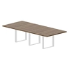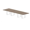 Коллекция столов для совещаний с рамными металлическими опорами и массивными меламиновыми столешницами древесных декоров.